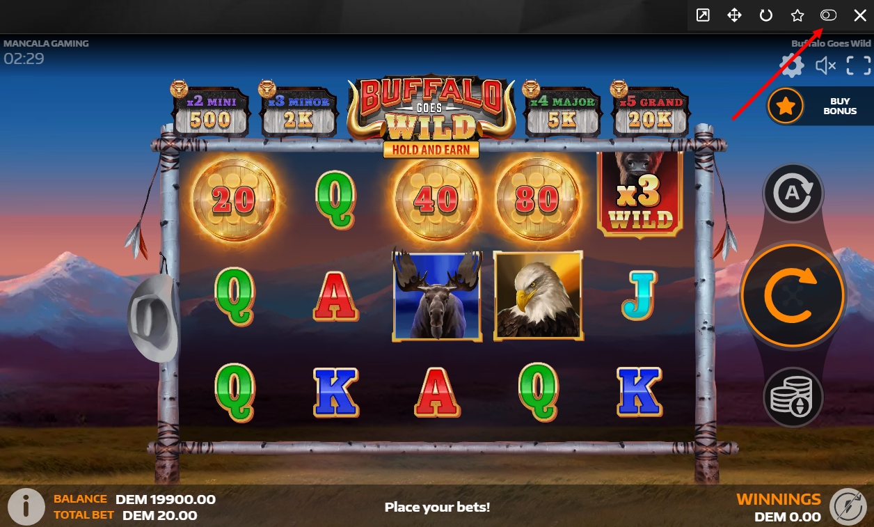 Həqiqi pul itirmədən Buffalo Goes Wild-in bütün funksiyalarını araşdırmaq istəyənlər üçün demo rejimi mövcuddur. Demo rejim, slotun bütün funksiyalarını və xüsusiyyətlərini real pul istifadə etmədən sınamağa imkan verir. Demo rejimini başlatmaq üçün, oyunun interfeysindəki uyğun keçidi seçmək kifayətdir. Əgər demo rejimi avtomatik aktivləşməzsə, ekranda göstərilən təlimatlara baxın və keçidi aktivləşdirmək üçün üzərinə klikləyin. Bu, bonus funksiyaları haqqında məlumat almaq və oyunun mexanikasını öyrənmək istəyən yeni başlayanlar üçün ideal həll yoludur.